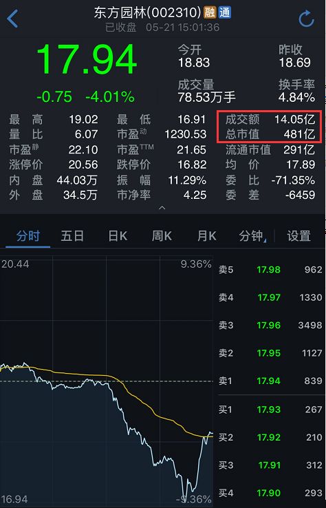 受債券發(fā)行失利消息影響,東方園林股價(jià)放量走低,盤中一度跌超9%,該公司市值在去年的時(shí)候最高達(dá)600億。
